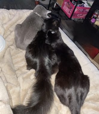 Since fostering Saber, I have three other foster fail cats that I adore immensely as well as successfully fostered two rabbits and eight cats. Kittens are always so fun but my passion is working with the fearful kitties that need someone to build trust with so they learn that not all people are bad. Two of my current boys came to me like this. They were “behavior fosters” meaning that they needed this socialization before they were truly suitable for adoption. It took a month for me to be able to touch one without him running and two for the other. Now they greet visitors, seek attention, and are little love bugs.